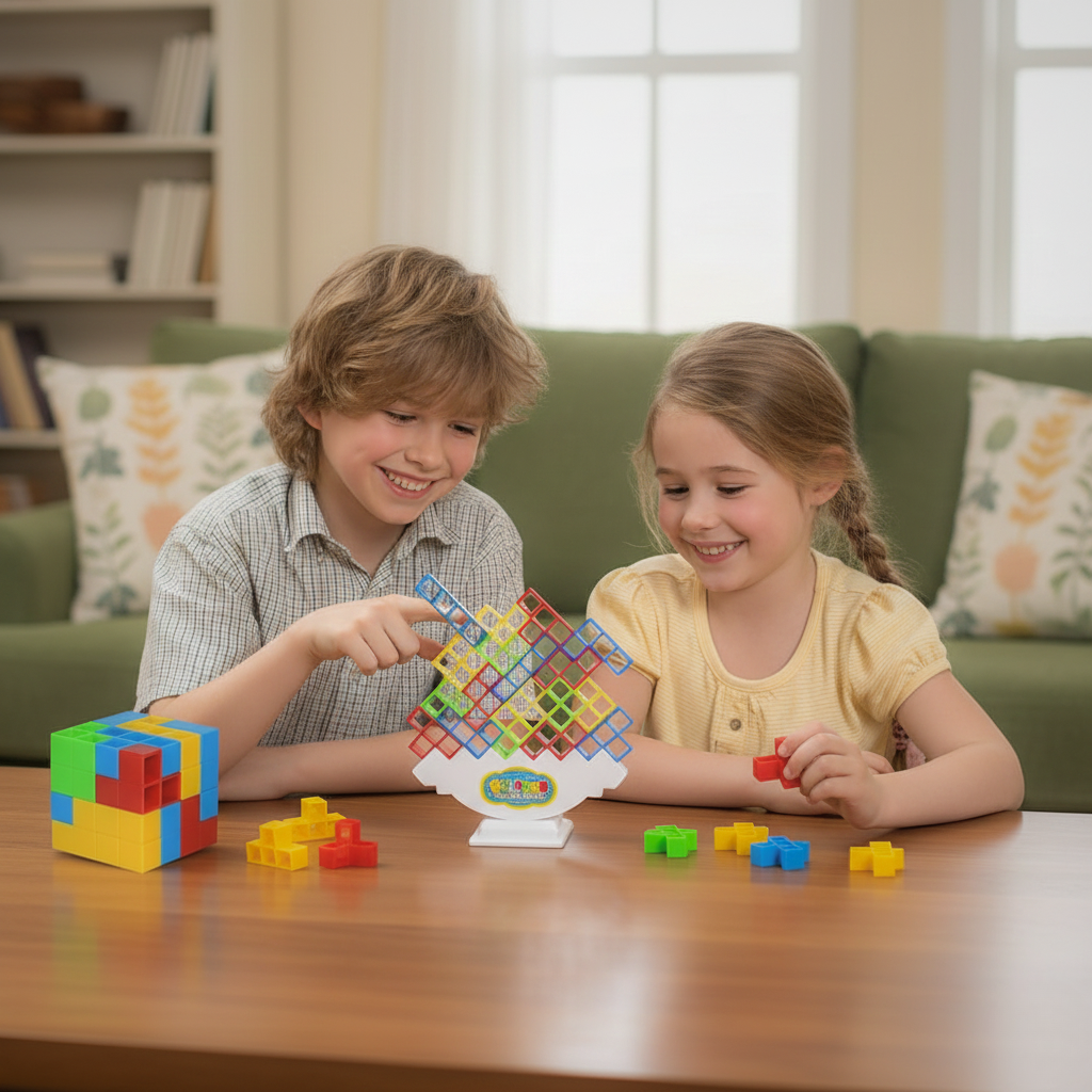 EquiliTower combina color, desafío y risas en un solo juego. Sus bloques vibrantes ayudan a desarrollar concentración, pensamiento lógico, motricidad fina y coordinación ojo-mano… ¡mientras se divierten!